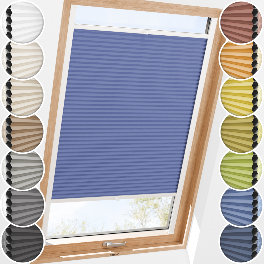 Rząska® Roleta plisowana na okno dachowe z prowadnicami • Blackout Honeycomb (Plaster Miodu): kolor tkaniny Linia horyzontu, niebieski • kolor profili biały