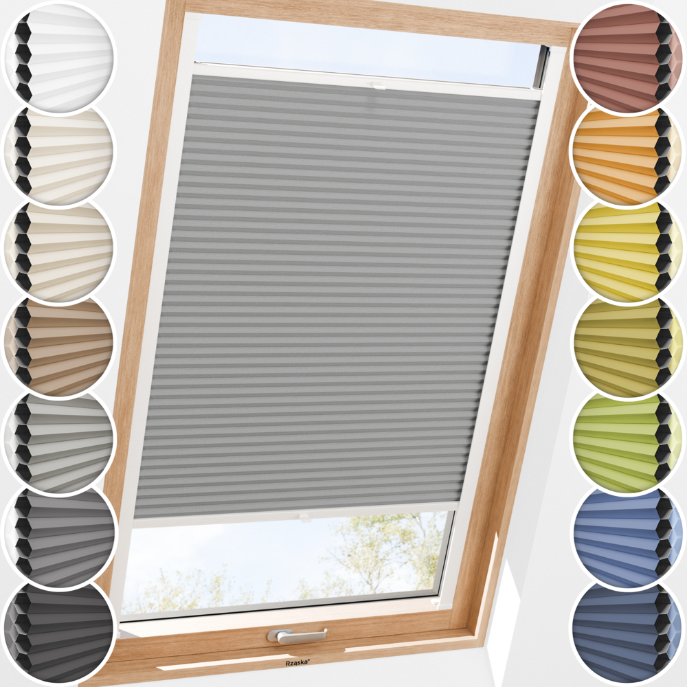 Rząska® Roleta plisowana na okno dachowe z prowadnicami • Blackout Honeycomb (Plaster Miodu): kolor tkaniny Srebrna mgiełka, szary • kolor profili biały
