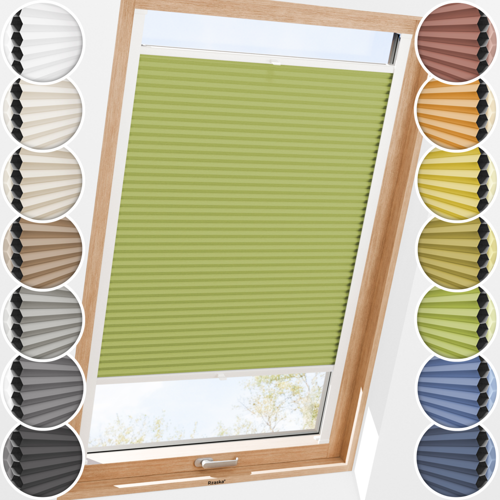 Rząska® Roleta plisowana na okno dachowe z prowadnicami • Blackout Honeycomb (Plaster Miodu): kolor tkaniny Zielona herbata, zielony • kolor profili biały