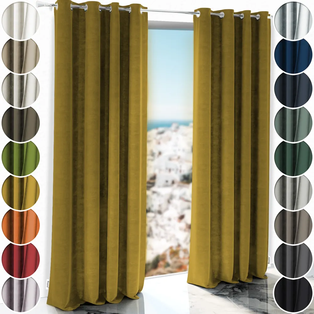 Zasłony zaciemniające Rząska® na przelotkach z kolekcji Millenium Velvet, 1 sztuka szyta na wymiar w kolorze Butterscotch, żółtym.